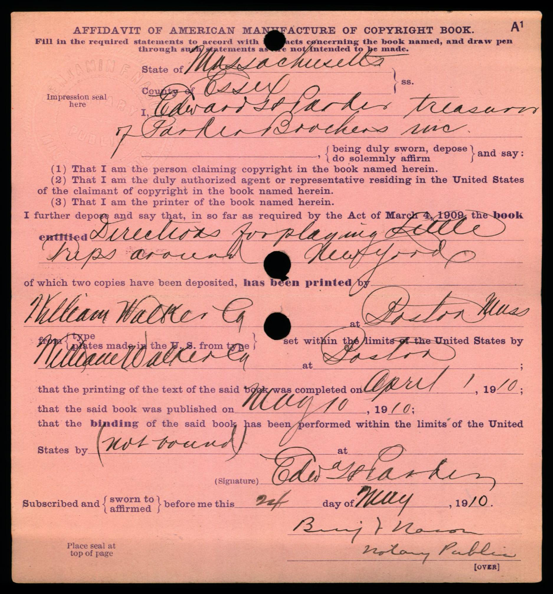 Copyright Form A1 As Used in 1910 to 1911 (at least)