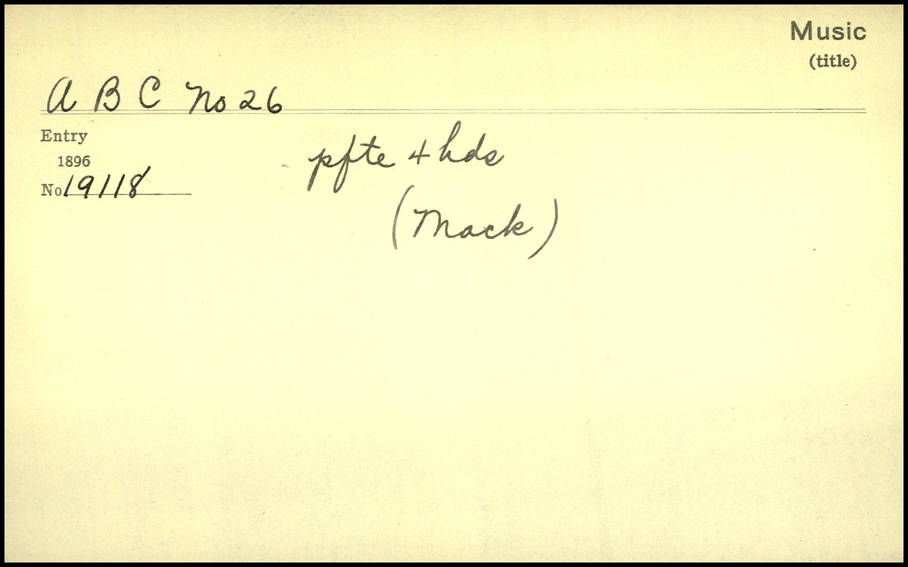 The title of the work, “A B C No 26” appears as the header text above the line, which is used for sorting cards in the card drawer.