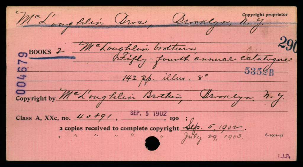 Copyright Card As Used in 1900 (at least)