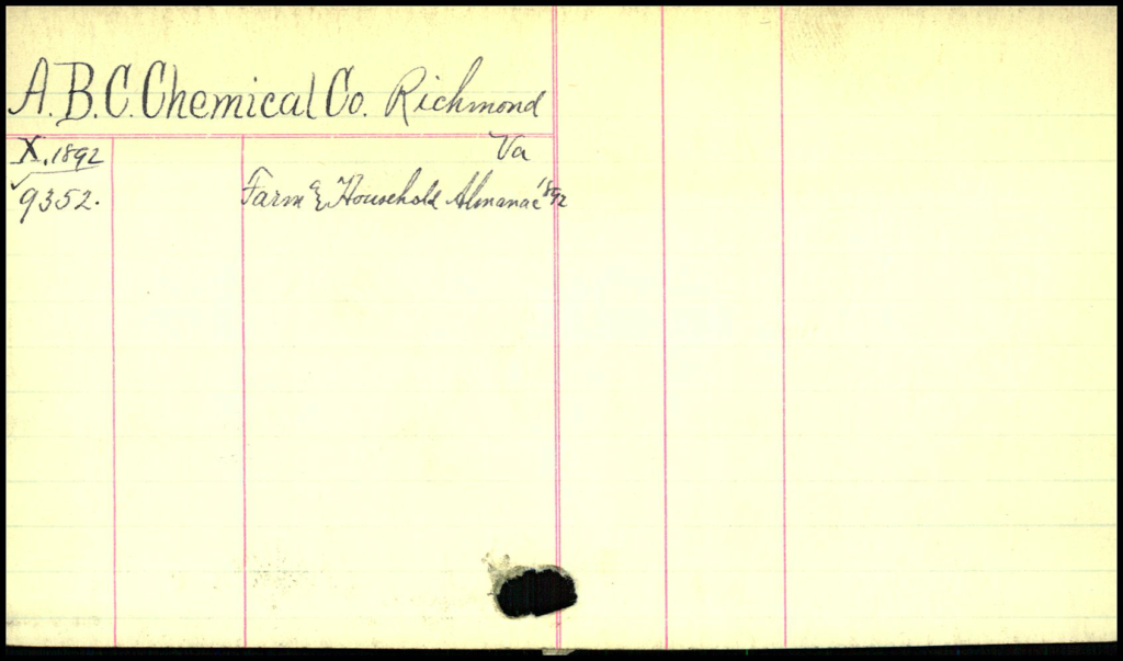 Note that these cards, unlike most later cards, do not have a hole punched through them. These cards were readily removable from card catalog drawers since no metal rod was used to secure the cards in the drawers.
